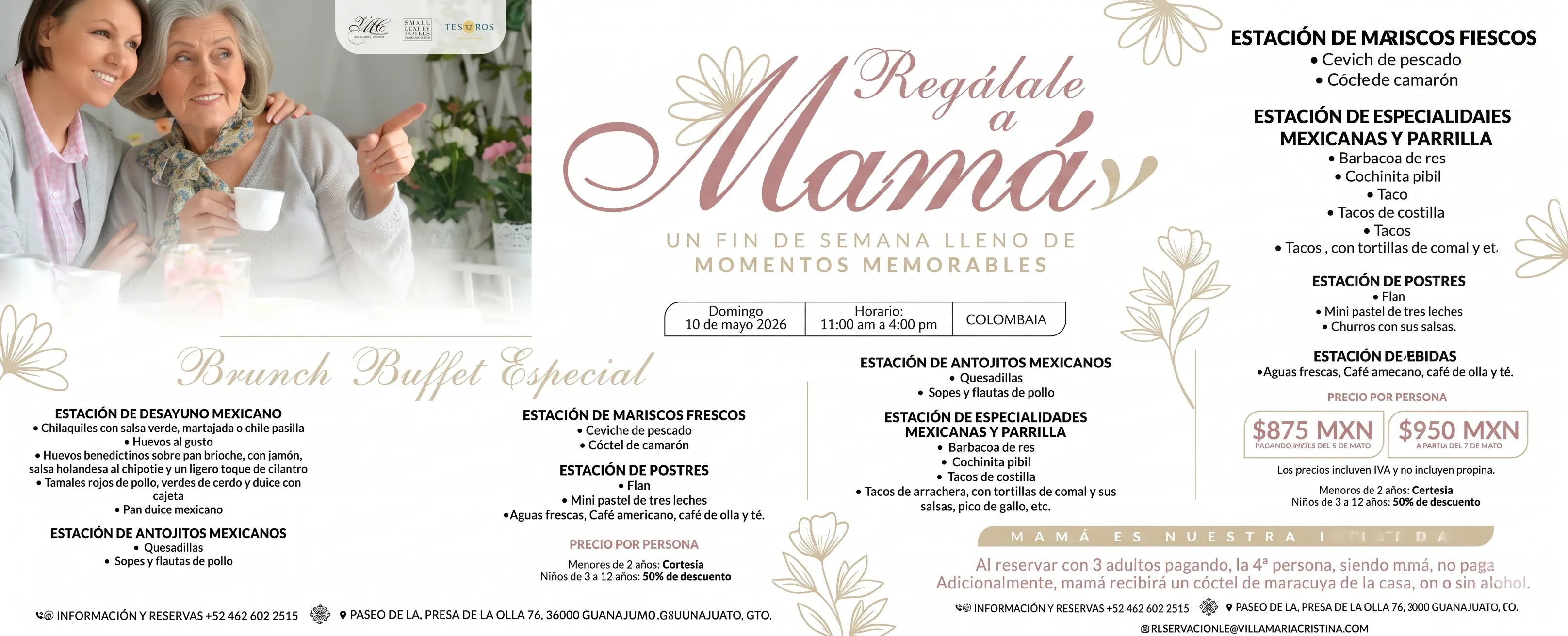 ¡Mamá es nuestra invitada! (En la reserva de 3 adultos pagando, la 4ª persona, siendo mamá, no paga). Incluye cóctel de bienvenida para ella. Domingo 10 de mayo de 2026.